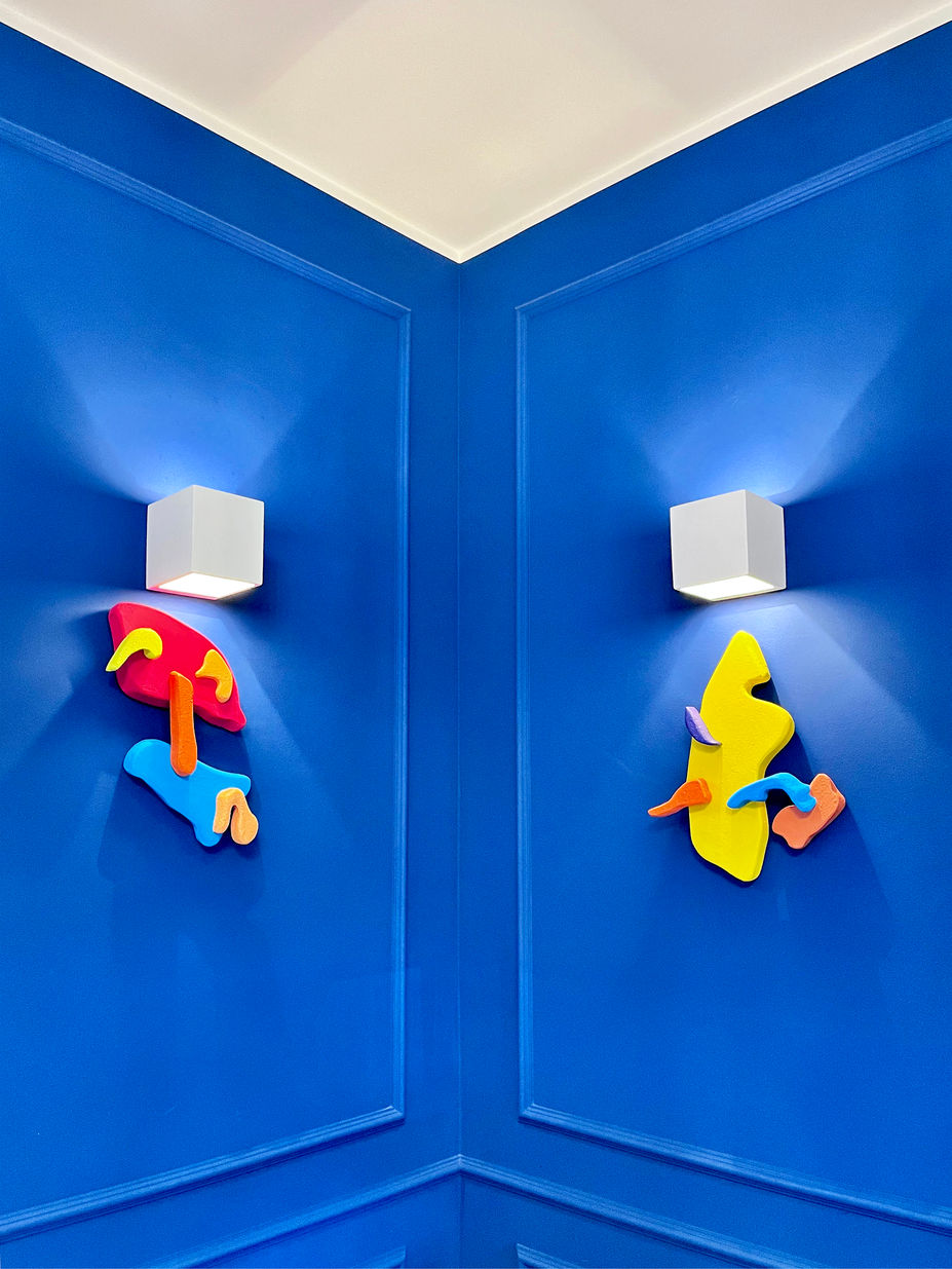 SIPHONOPHORAE is composed of a multiplicity of aggregates that recall a natural organic atmosphere in shapes and colors. The “zooids” are distributed in the space in a continuous game of references, to generate in the visual field a single large artwork, which alludes